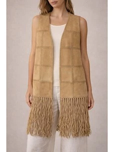 Long eco suede vest with fringes PHO Firenze