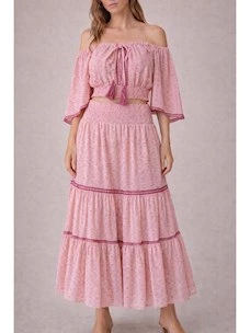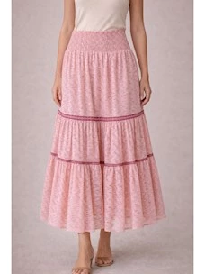 Long skirt with flounces and smocked waist PHO Firenze